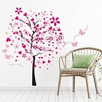 ملصقات جدارية فنية على شكل شجرة زهرة كرتون وردية جميلة بتصميم